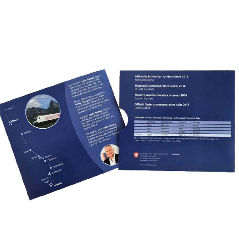 Auf die Eröffnung des neuen Gotthard-Bahntunnels im Jahre 2016 hat die Schweizerische Nationalbank die 20-Franken-Gedenkmünze herausgegeben. Bereits nach wenigen Tagen war die komplette Auflage ausverkauft. Bei uns können Sie nach wie vor Exemplare in stempelglanz im Folder erstehen.