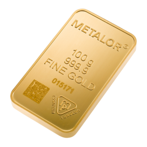 100 g Goldbarren von Metalor (geprägt)